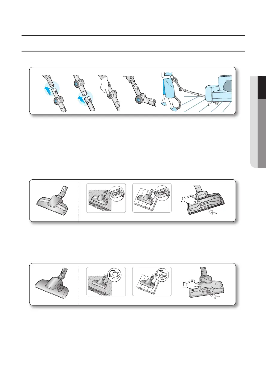 1. Dirsek uzatma tüpünü hortum düğmesinin ve teleskopik borunun bağlantı parçalarına takın.