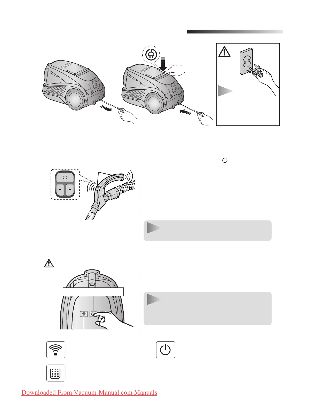 highsuction power. Press the (-) button to oper-
