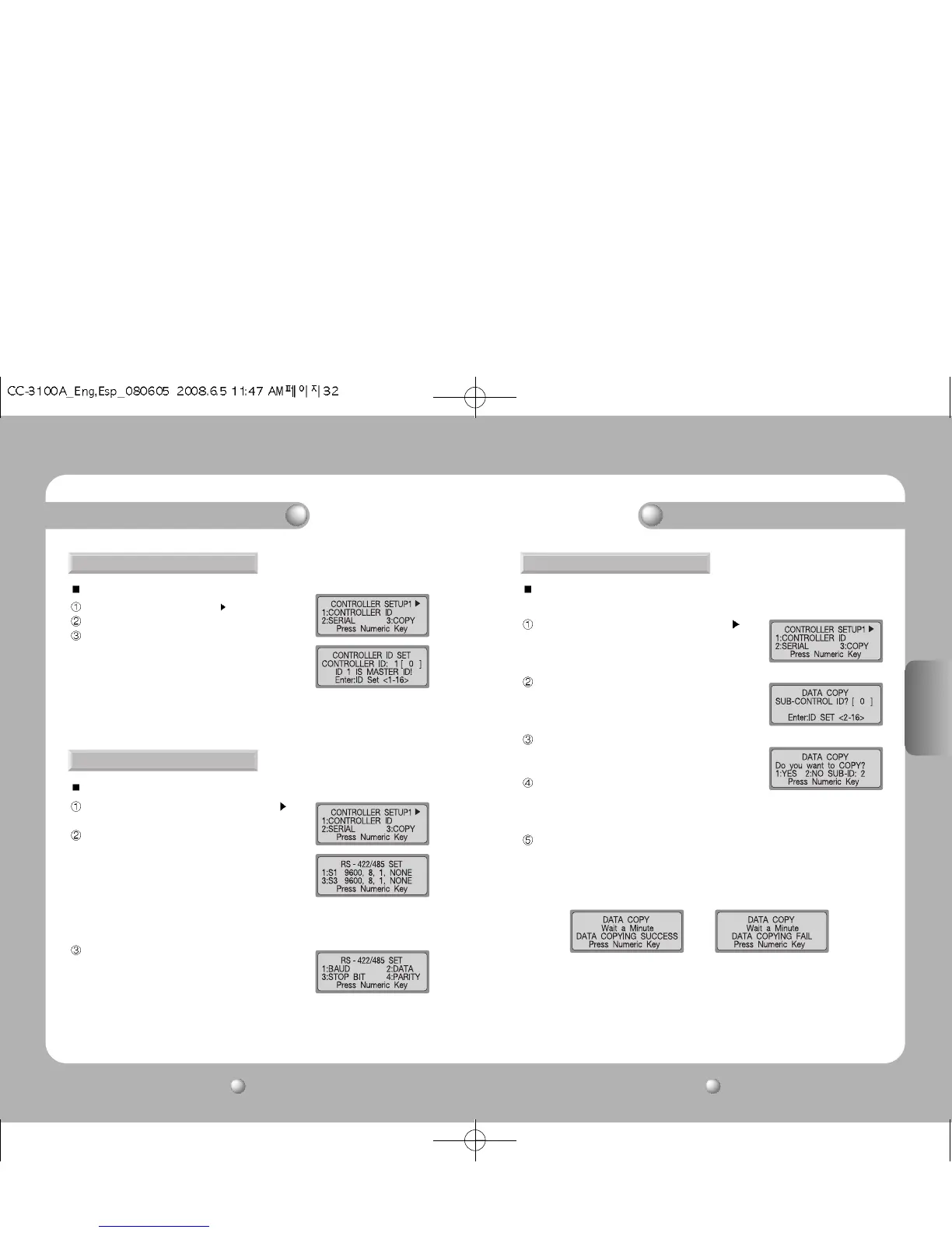 Este menú sirve para configurar la ID del controlador. Este menú sirve para copiar datos del menú del controlador master a un sub-