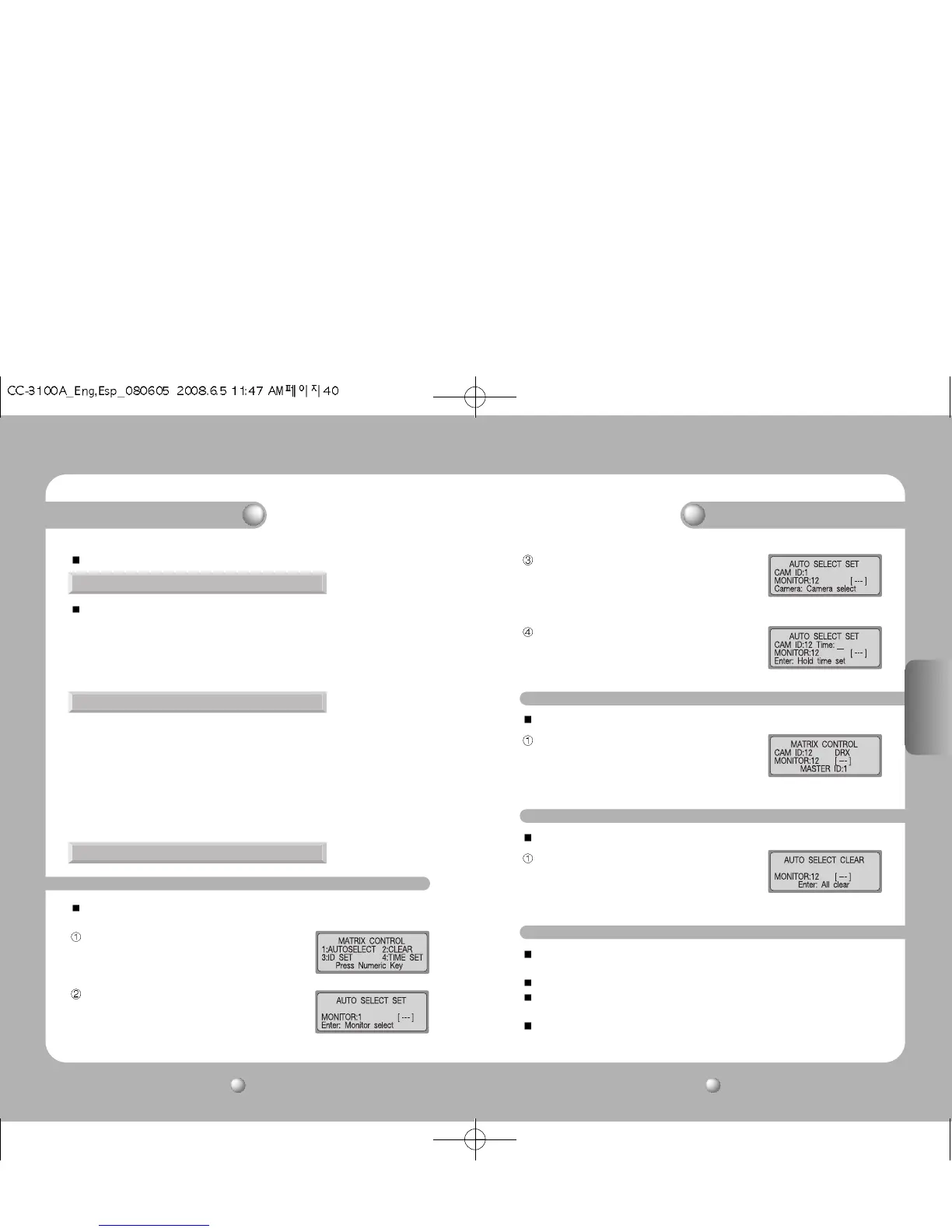 Ésta es una función manual que muestra las cámaras conectadas al SISTEMA MATRIX en el monitor.