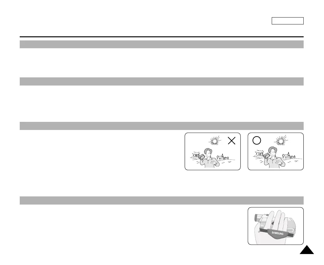 1. Do not position the camcorder such that the viewfinder is pointing towards the sun.
