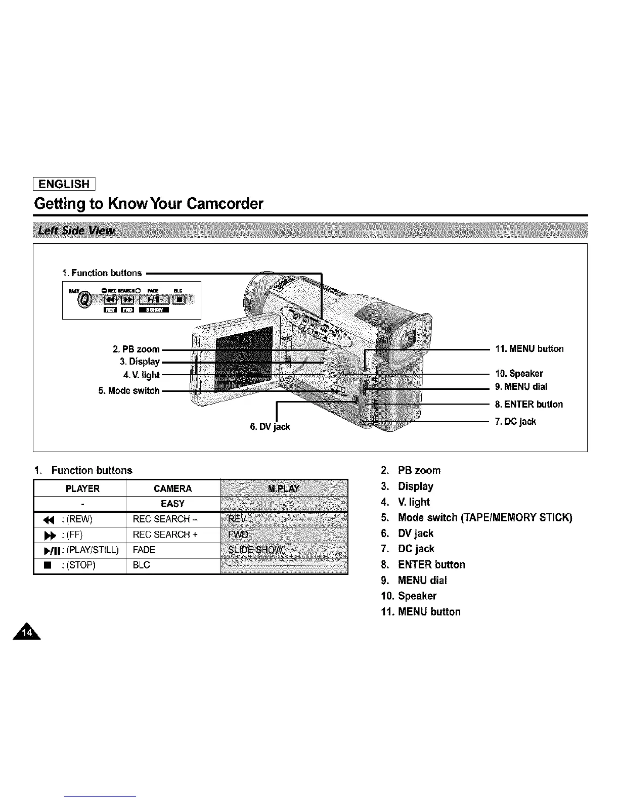 5. Mode switch (TAPE/MEMORY STICK)