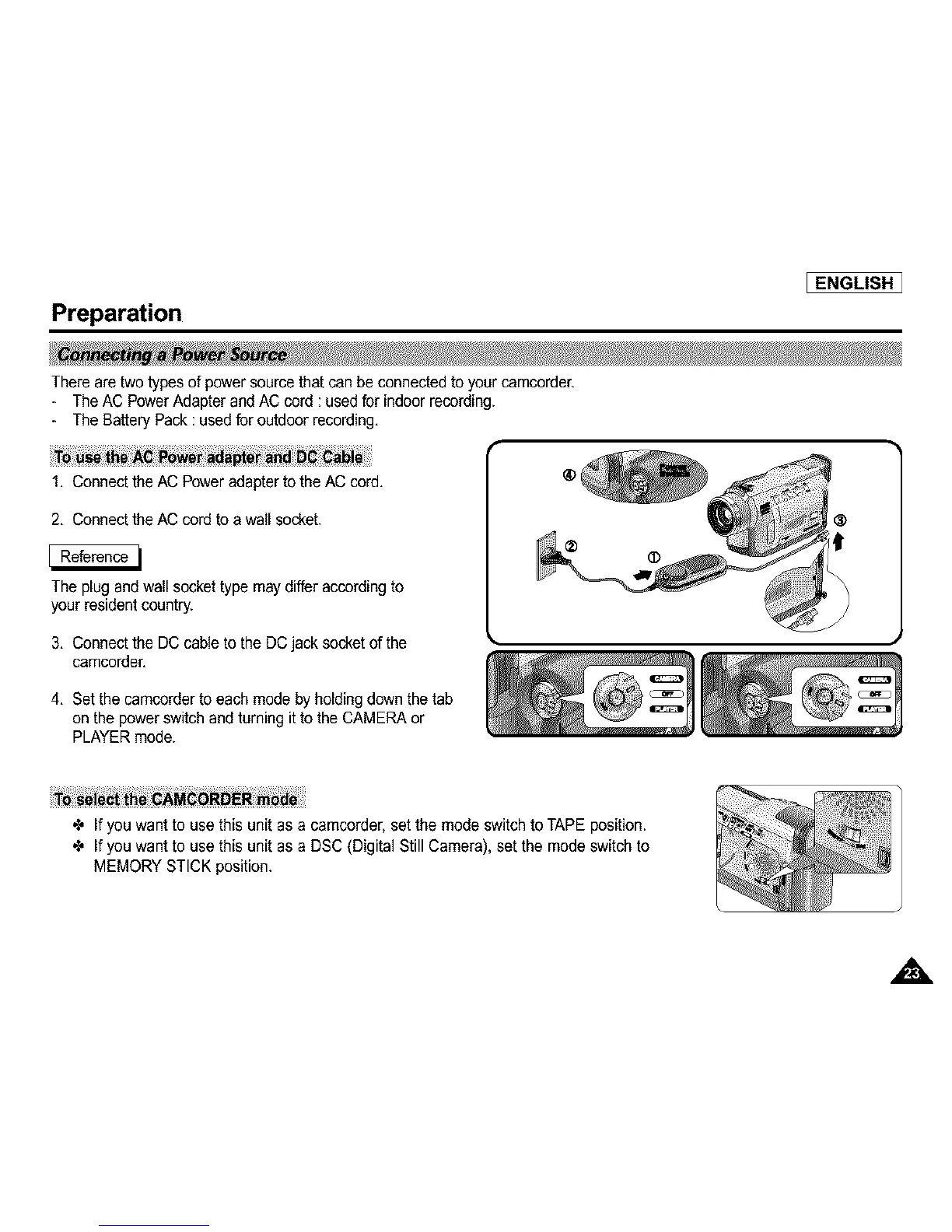There are two types of powersource that can be connected to your camcorder.