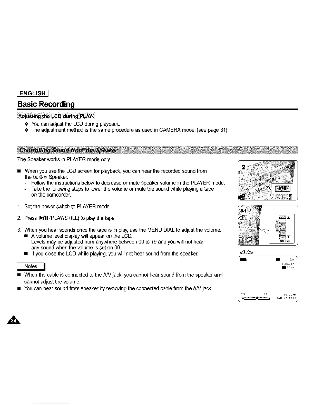 - Follow the instructions below to decrease or mute speaker volume in the PLAYER mode.