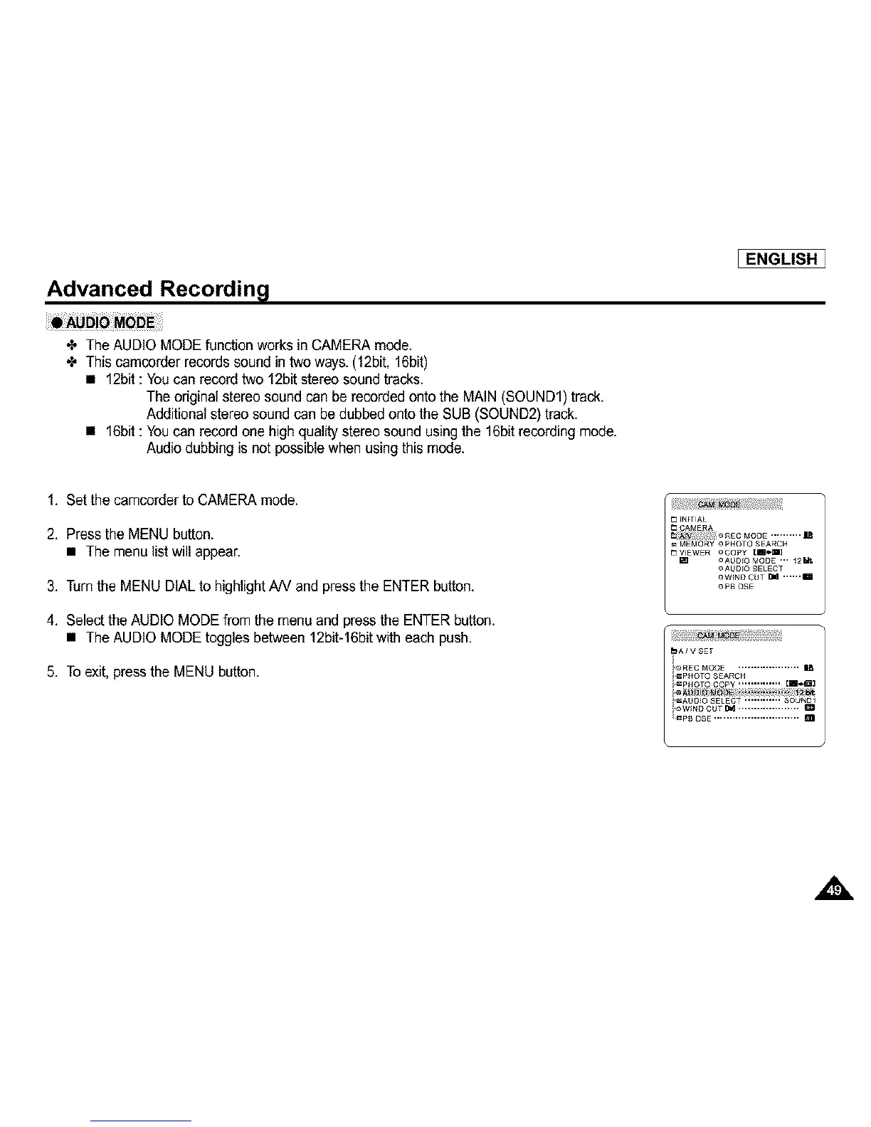 _, This camcorder recordssound in two ways. (12bit. 16bit)
