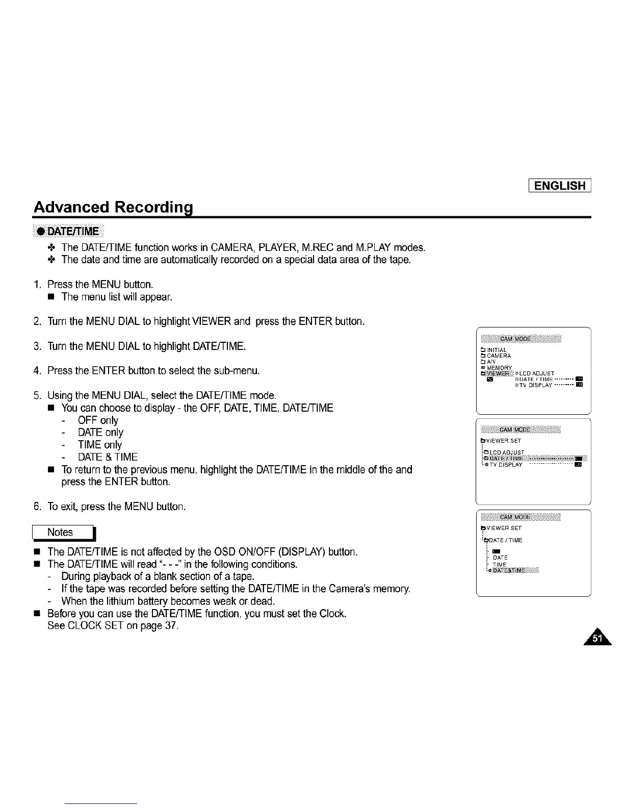 *_ The DATE/TIMEfunction works in CAMERA, PLAYER, M.RECand MPLAY modes.