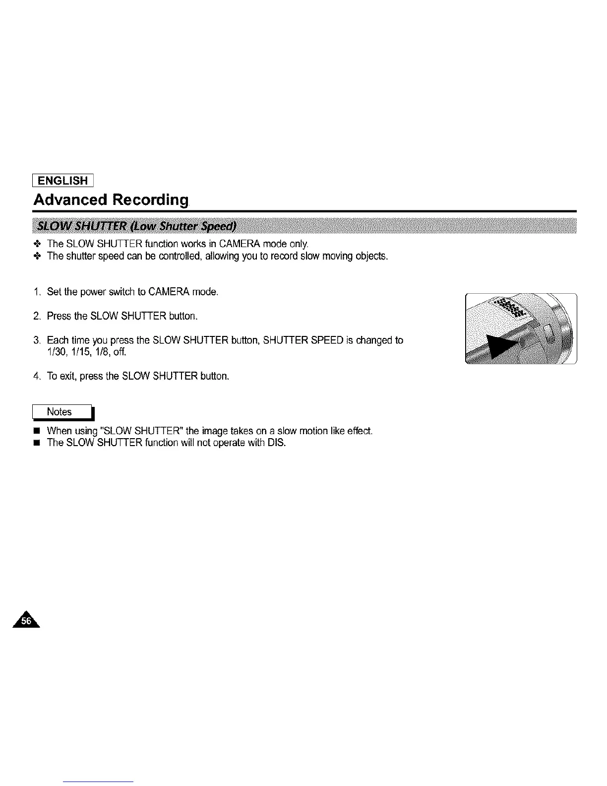 4, The SLOW SHUTTER function works in CAMERA mode only.