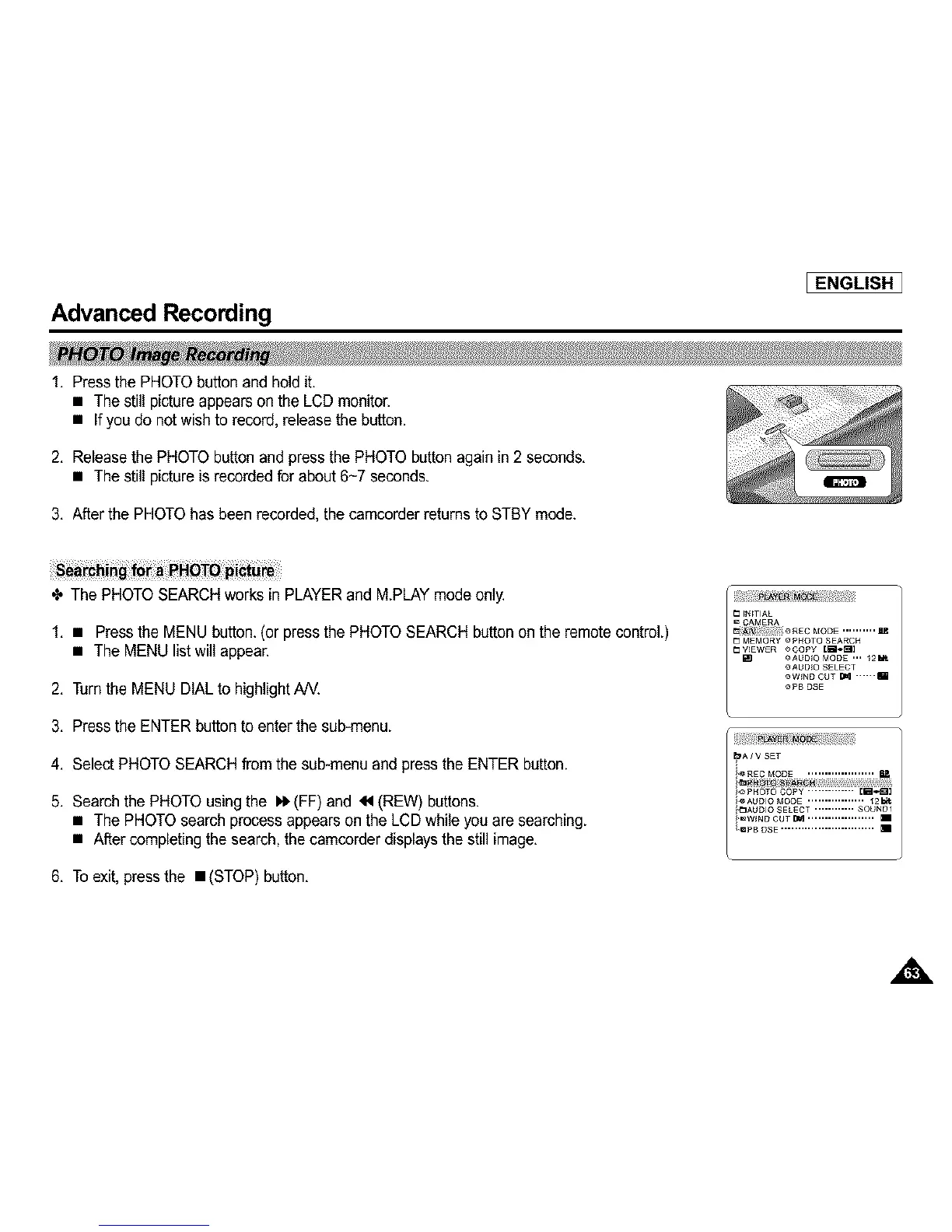 3. After the PHOTO has been recorded, the camcorder returns to STBY mode.