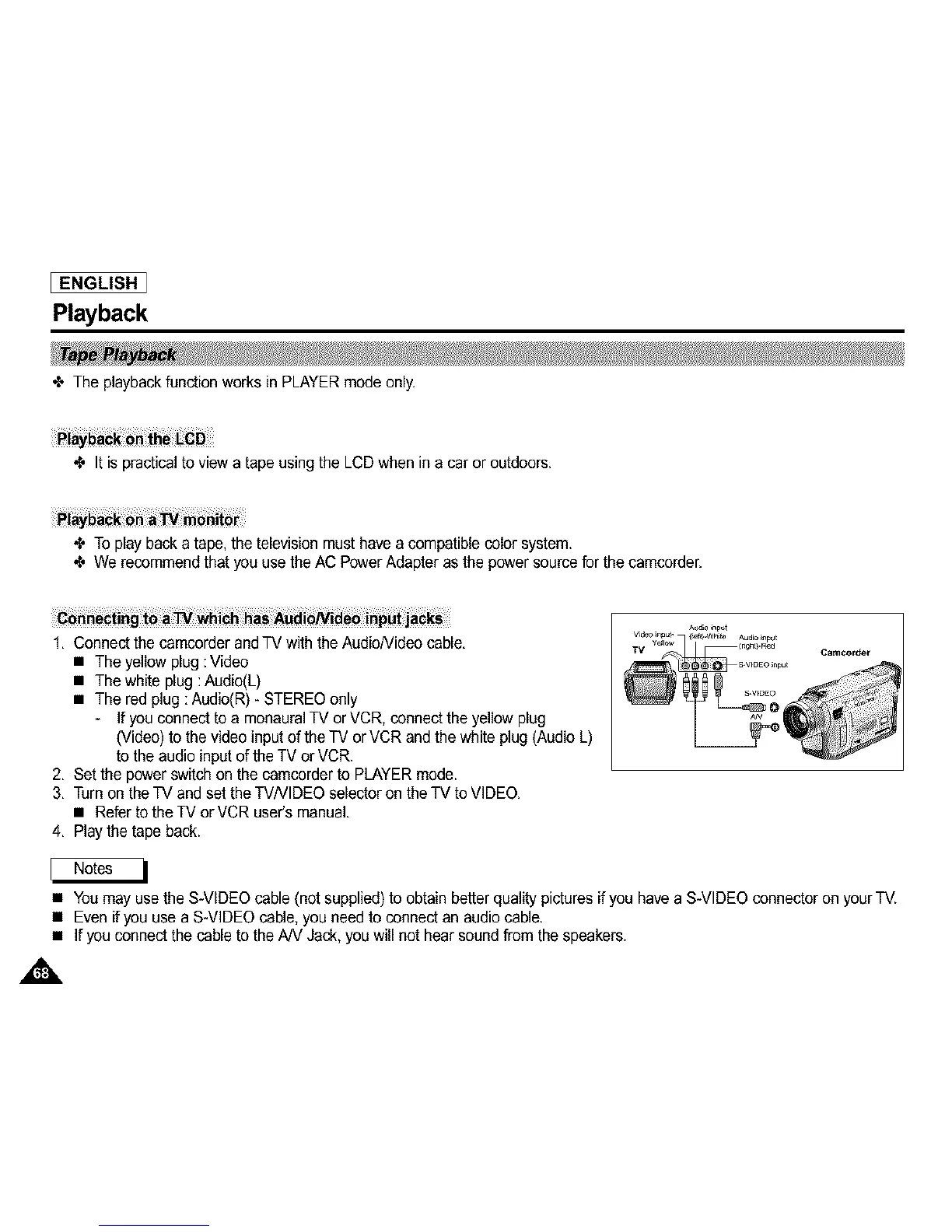 • Even if you use a S-VIDEO cable, you needto connect an audio cable.