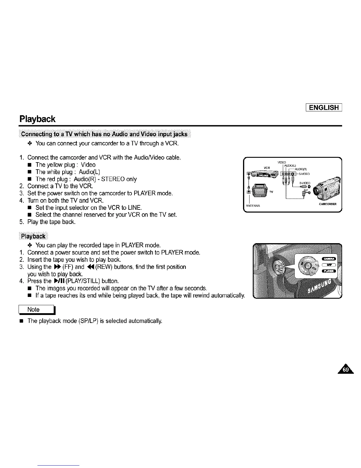 • The playback mode (SP/LP) is selected automatically.