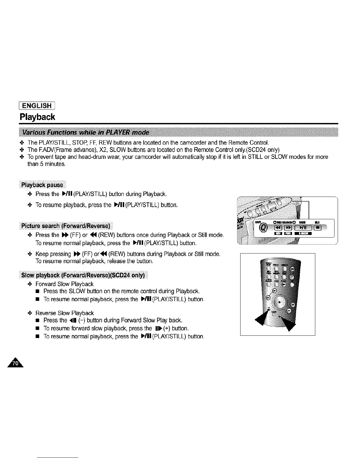 •Z, The PLAY/STILL,STOP,FF,REW buttons are located on the camcorder and the RemoteControl.
