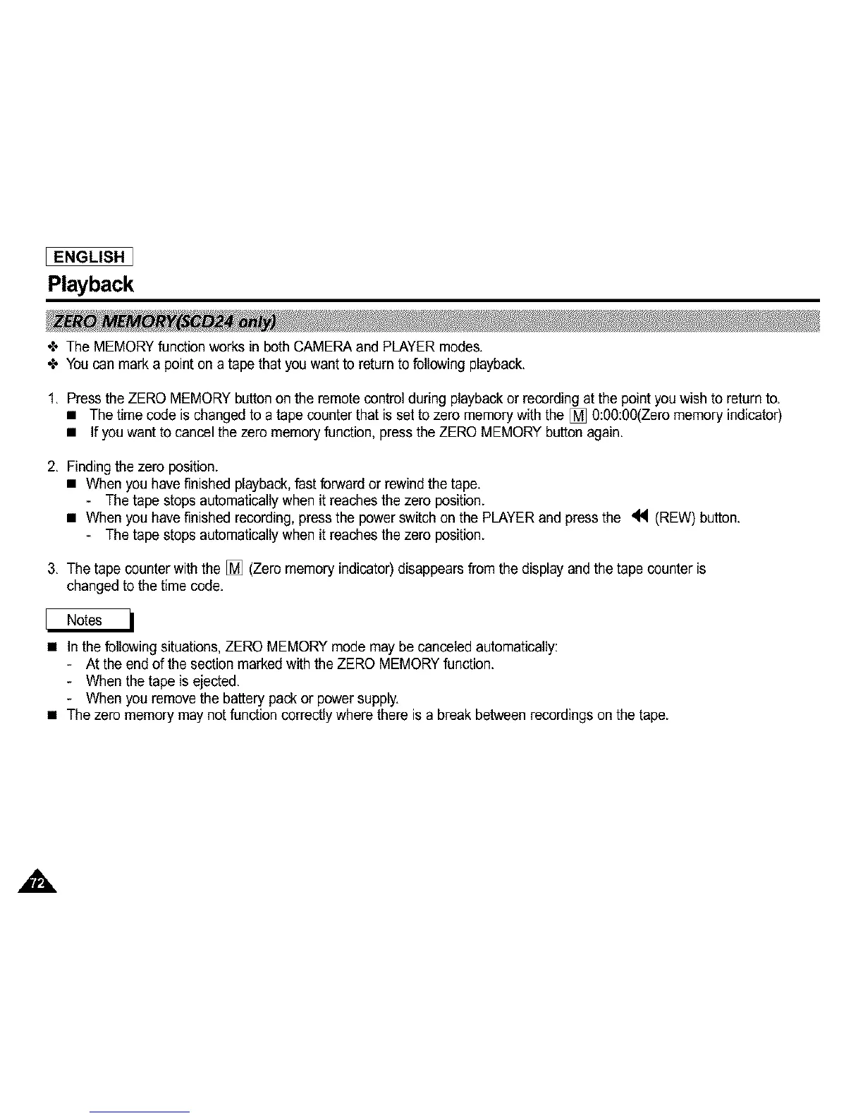 • The time code is changed to a tape counter that is set to zero memory with the [] 0:0O:00(Zeromemory indicator)