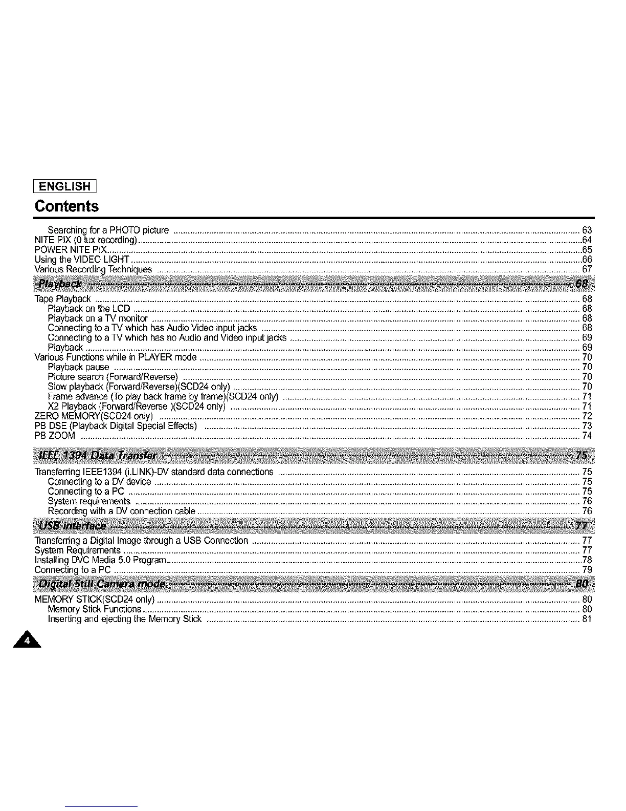 Transferring IEEE1394 (i.LINK)-DV standard data connections ...............................................................................................................................75
