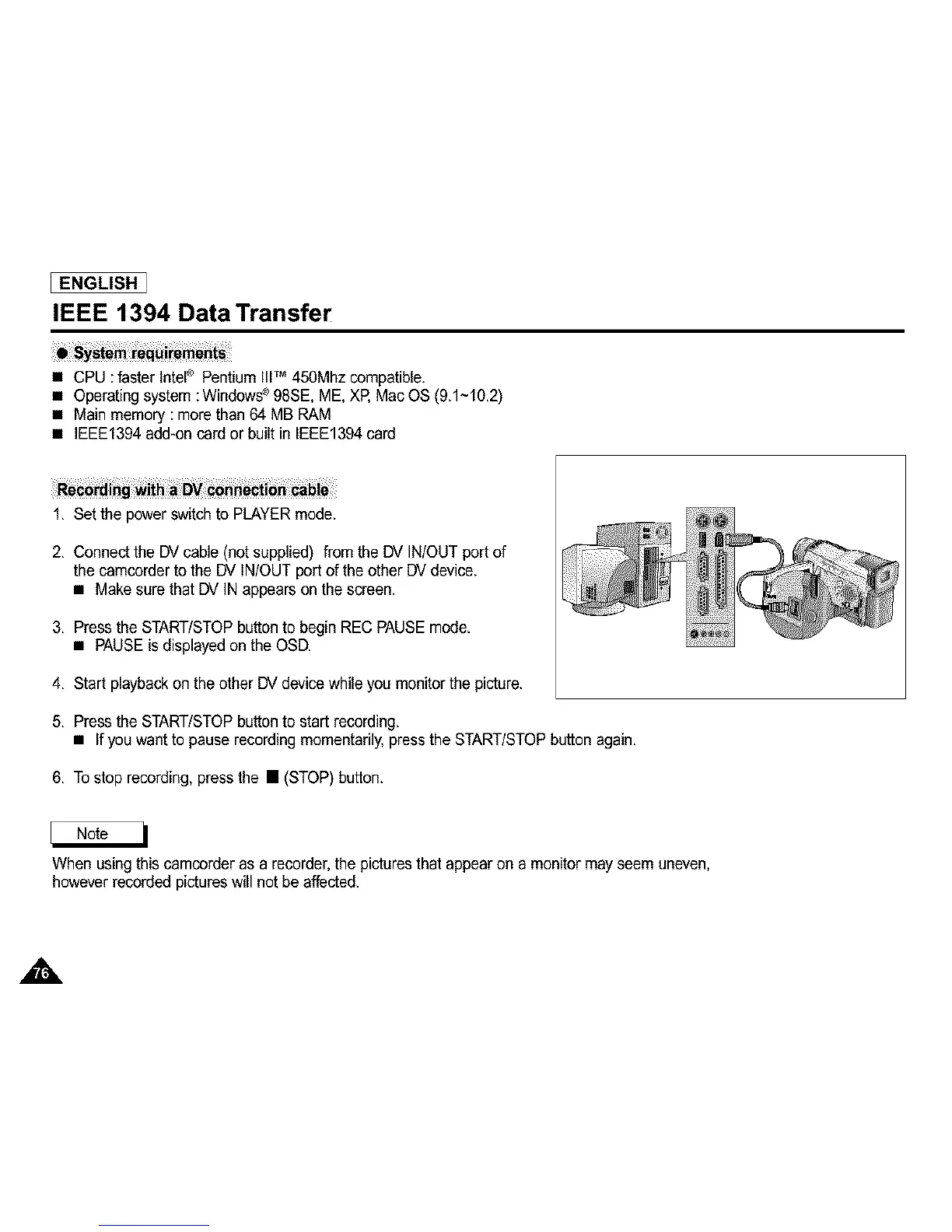 When using this camcorder as a recorder,the picturesthat appearon a monitor mayseem uneven,