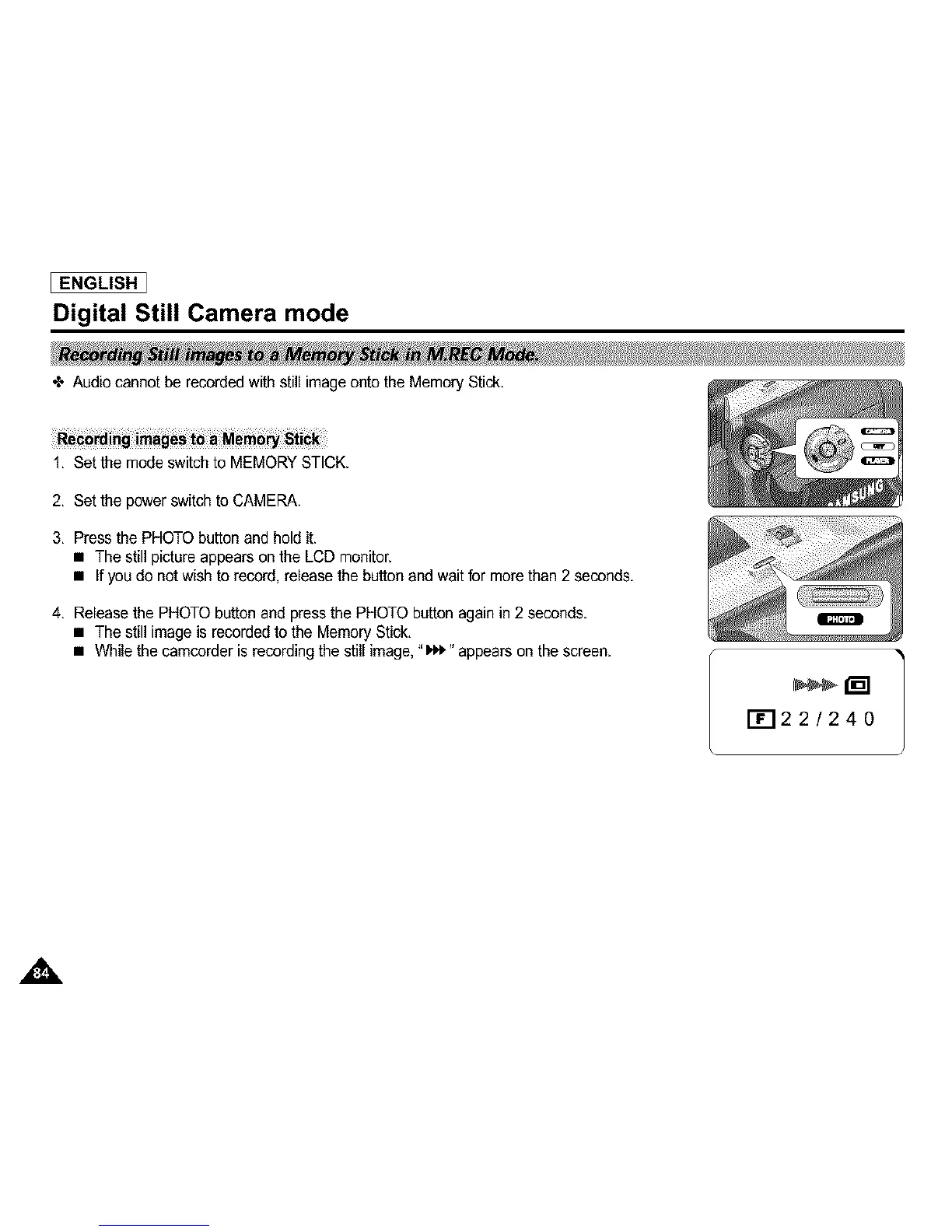 • While the camcorder is recording the still image, "_" appears on the screen.