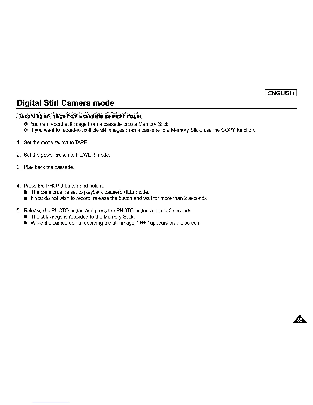 _, If youwant to recorded multiple still imagesfrom a cassette to a Memory Stick. use the COPY function.