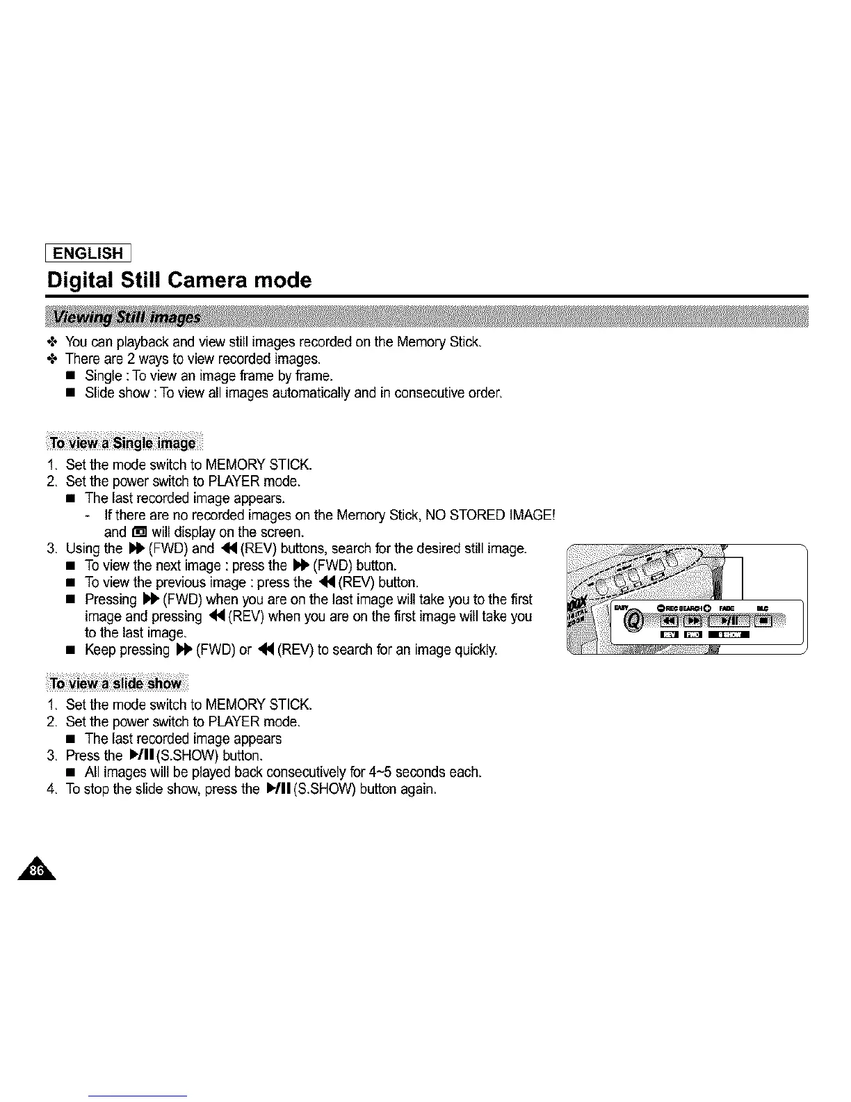 3. Using the _,_(FWD) and _N(REV) buttons, search for the desired still image.
