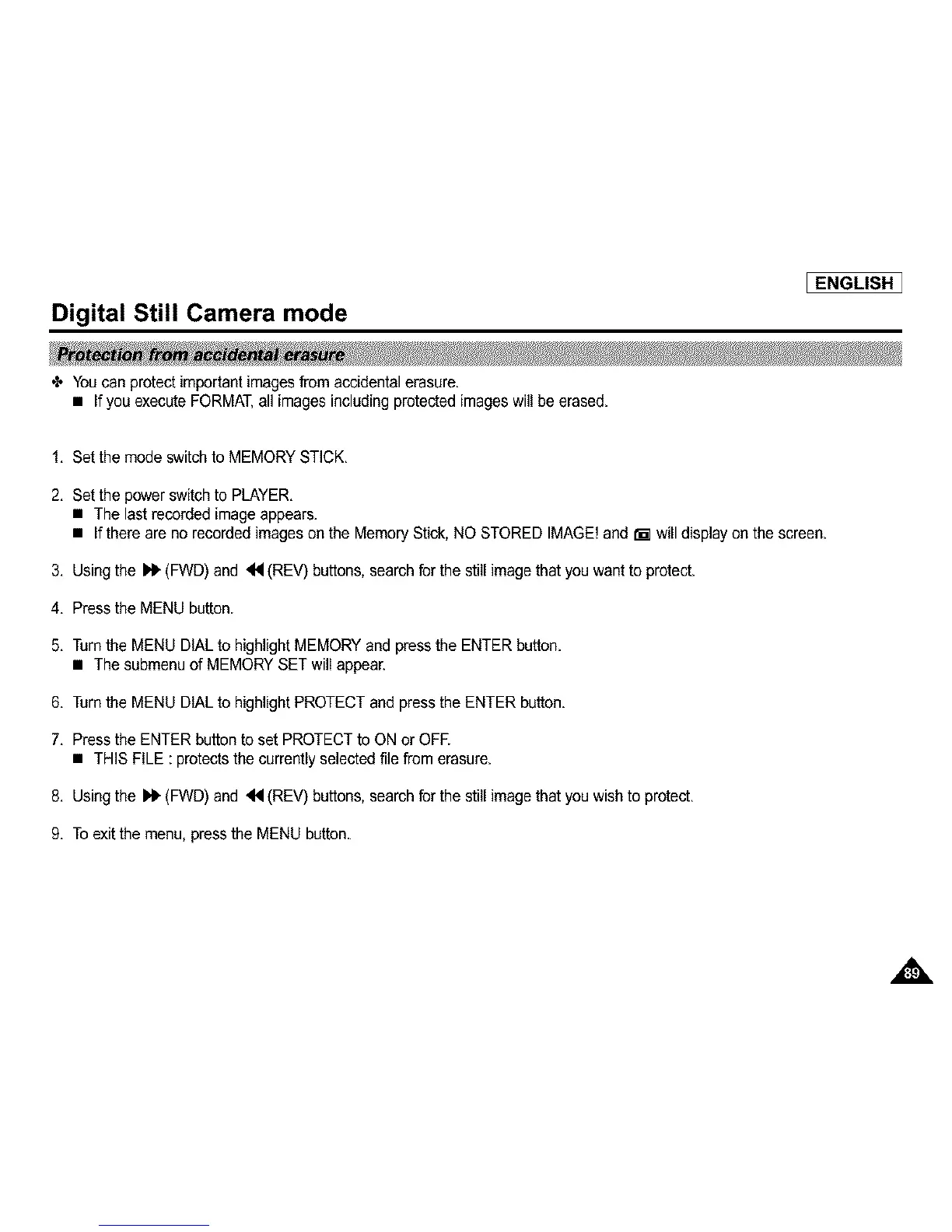 8. Using the )_" (FWD) and _ (REV) buttons, search for the still imagethat you wish to protect.