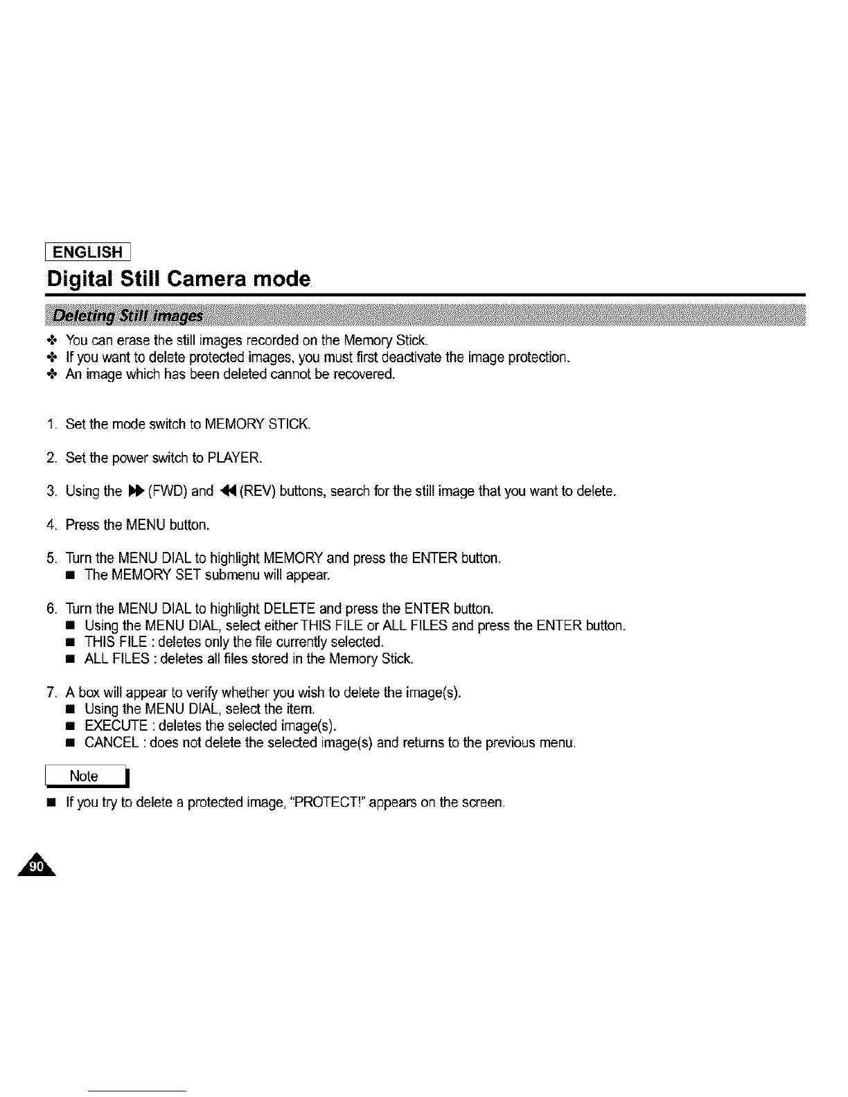 3. Using the _ (FWD) and _N(REV) buttons, search for the still image that you want to delete.