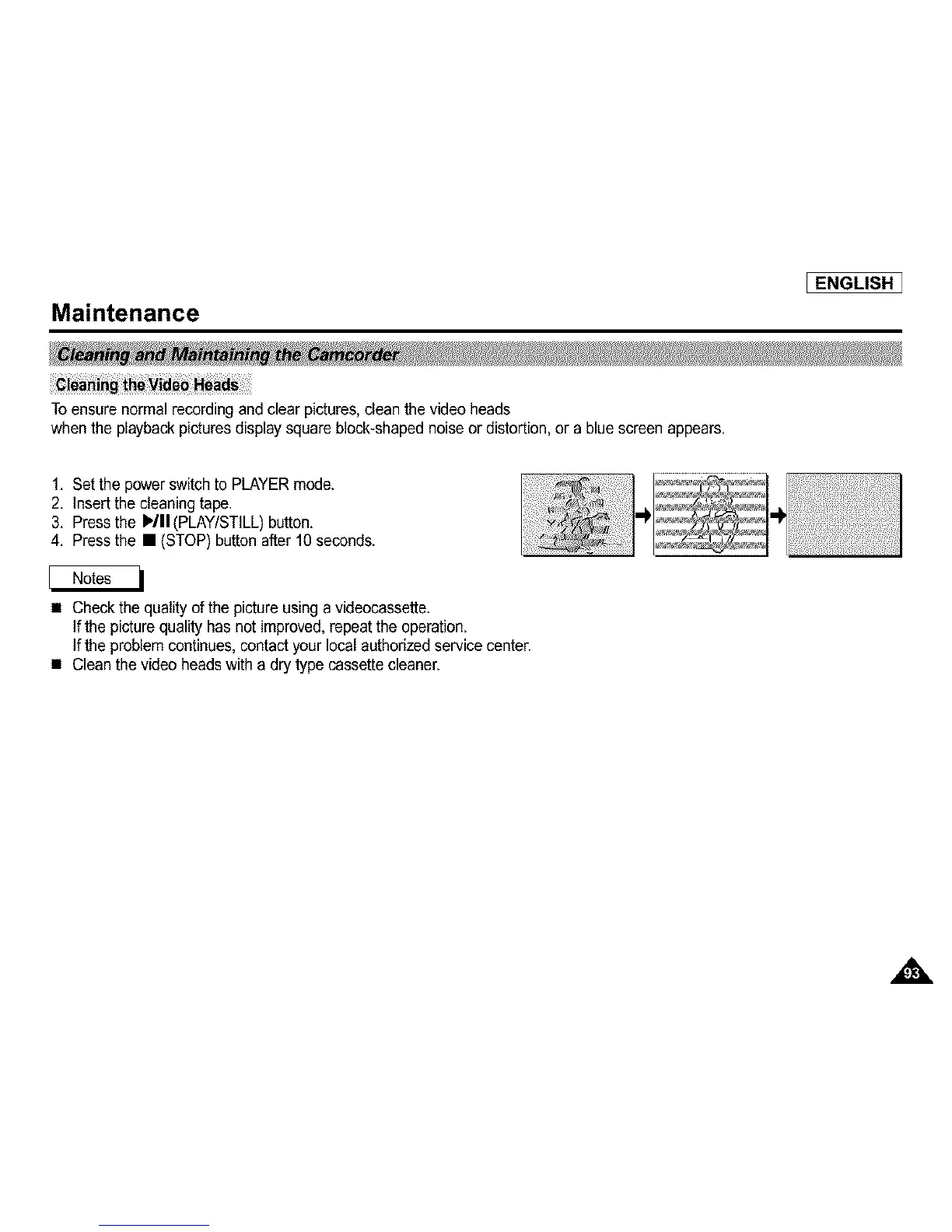Toensure normal recording and clear pictures,clean the video heads