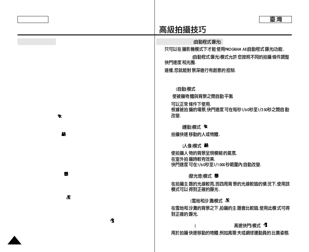 ✤ The PROGRAM AE function works in CAMERA mode only.