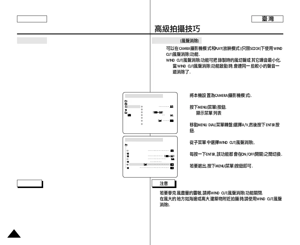 ✤ The WIND CUT function works in CAMERA and