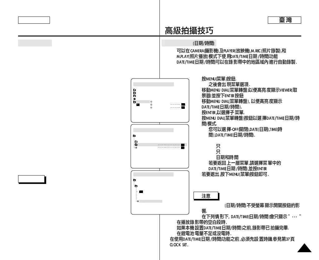✤ The DATE/TIME function works in CAMERA, PLAYER, M.REC