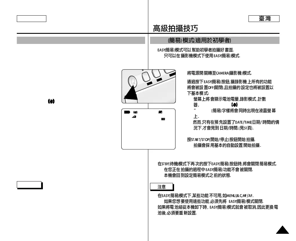 The EASY function will not turn off when you have recording.