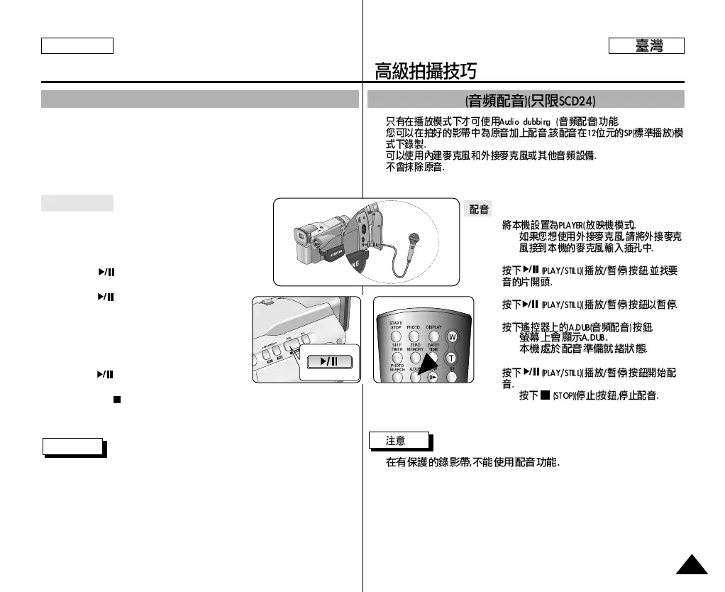 ✤ The AUDIO DUBBING function only works in PLAYER Mode.