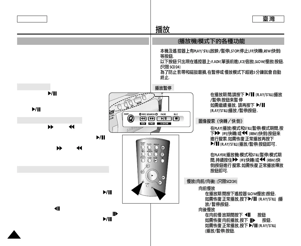 ✤ The PLAY/STILL, STOP, FF, REW buttons are located on the camcorder