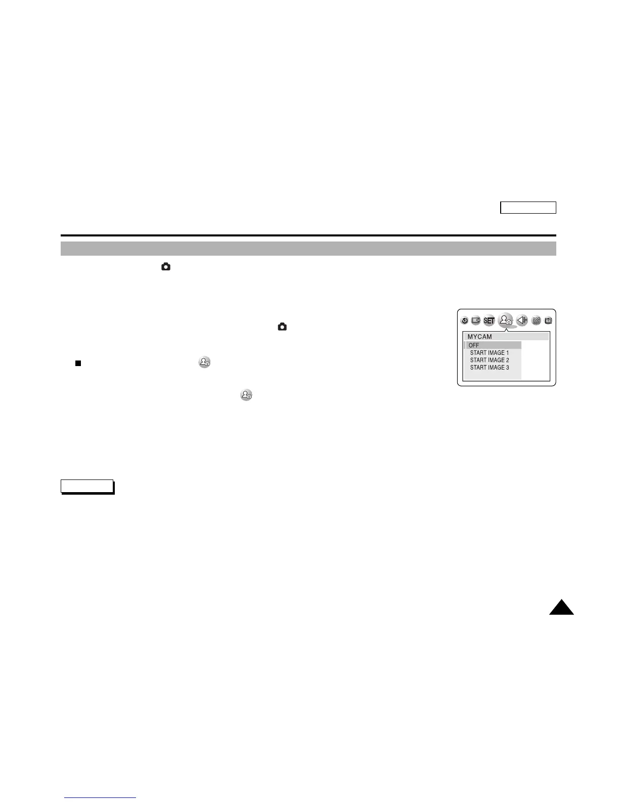 3. Press the LEFT or RIGHT button to select (MYCAM), then press the DOWN button.
