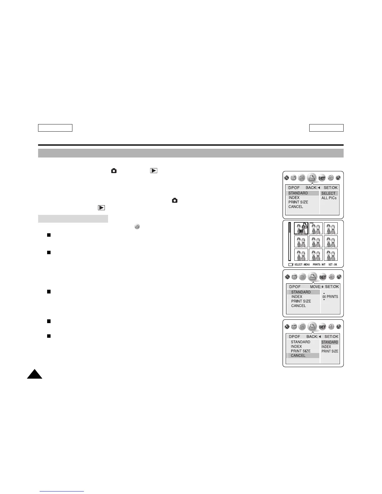 DPOF menu only works in (CAMERA) s PLAY mode.