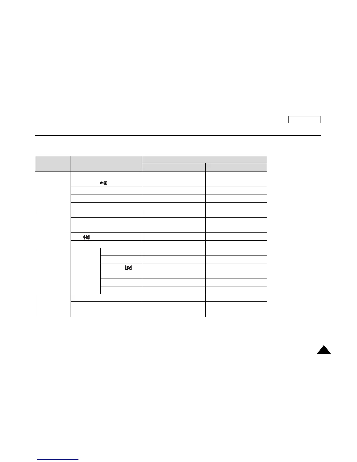 Available menu items according to the current mode are shown below.