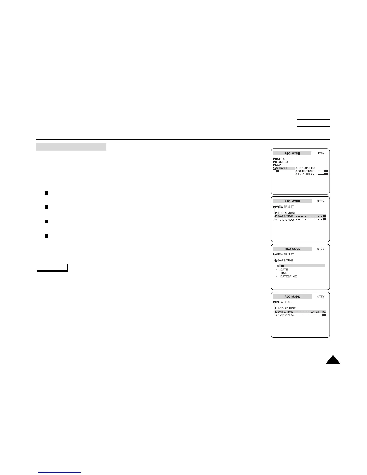 Displays the DATE / TIME on the LCD monitor while recording or playing a tape.