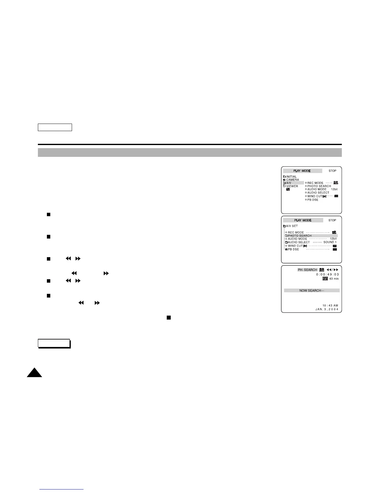 Searching the Still Images recorded on a tape works only in PLAY mode.