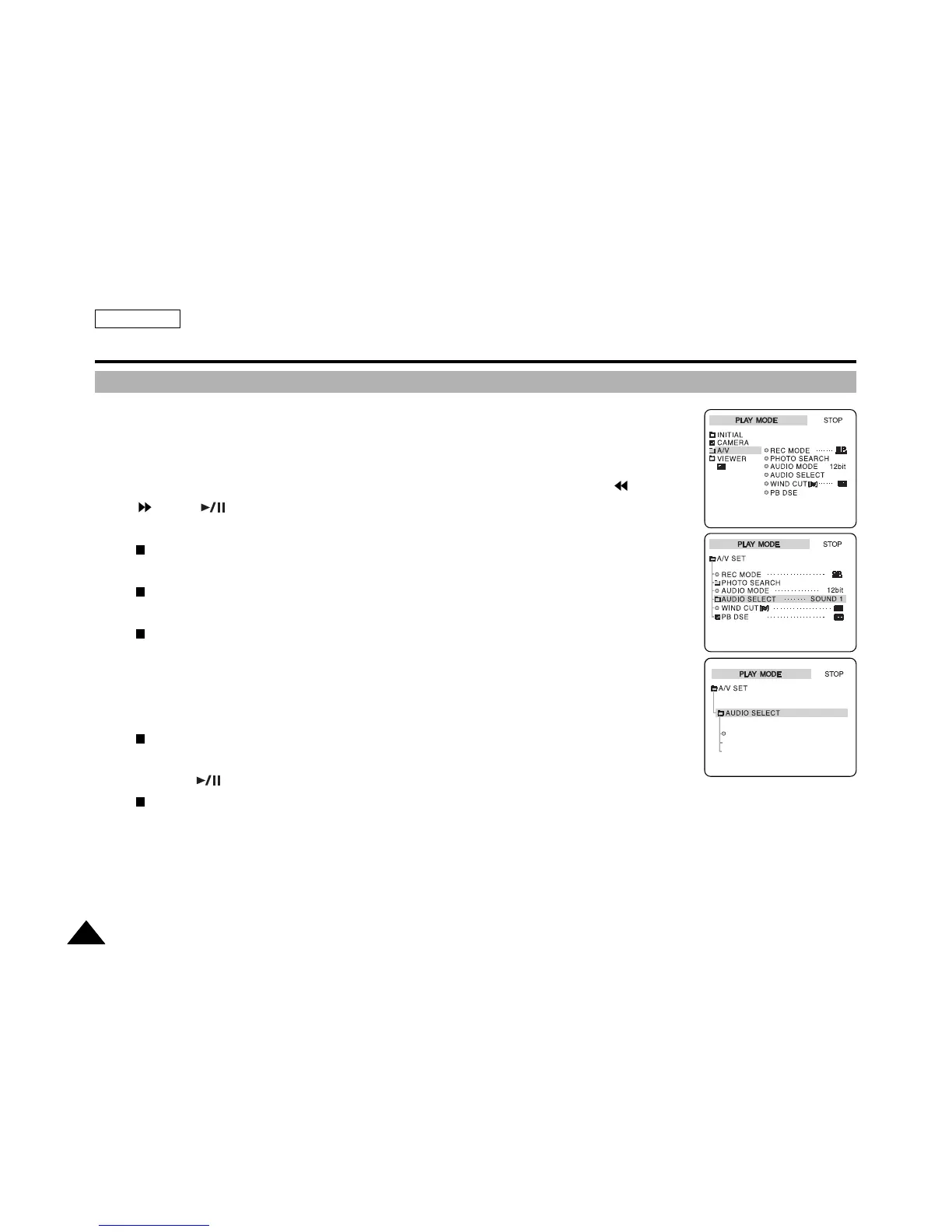 The available AUDIO SELECT options are listed.