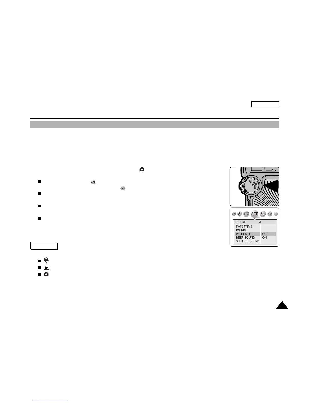 You can enable or disable the Wireless Remote Control for use in Camera mode.