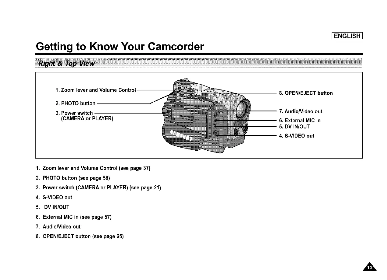 3_ Power switch (CAMERA or PLAYER) (see page 21)