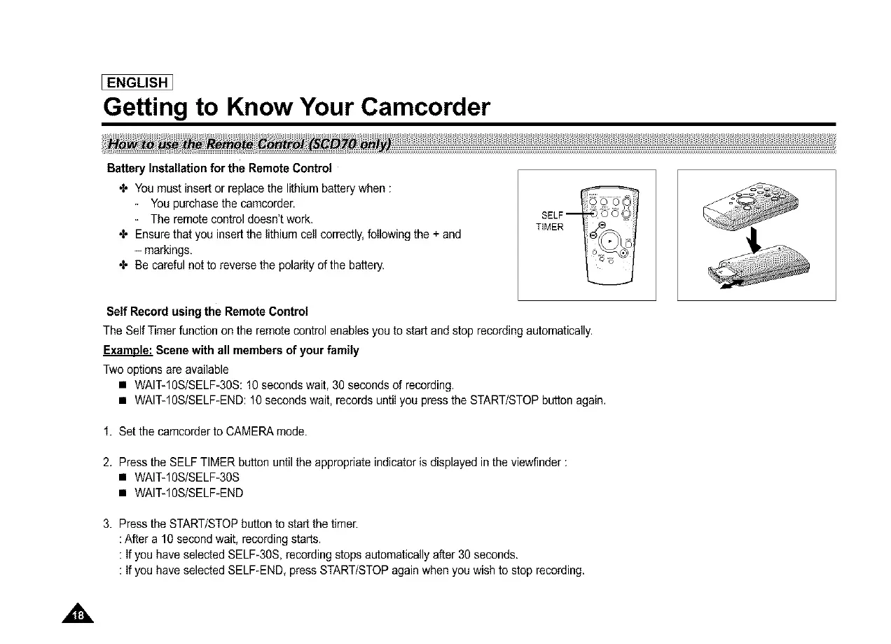 The SelfTimer function onthe remote control enables you to start and stop recording automatically.
