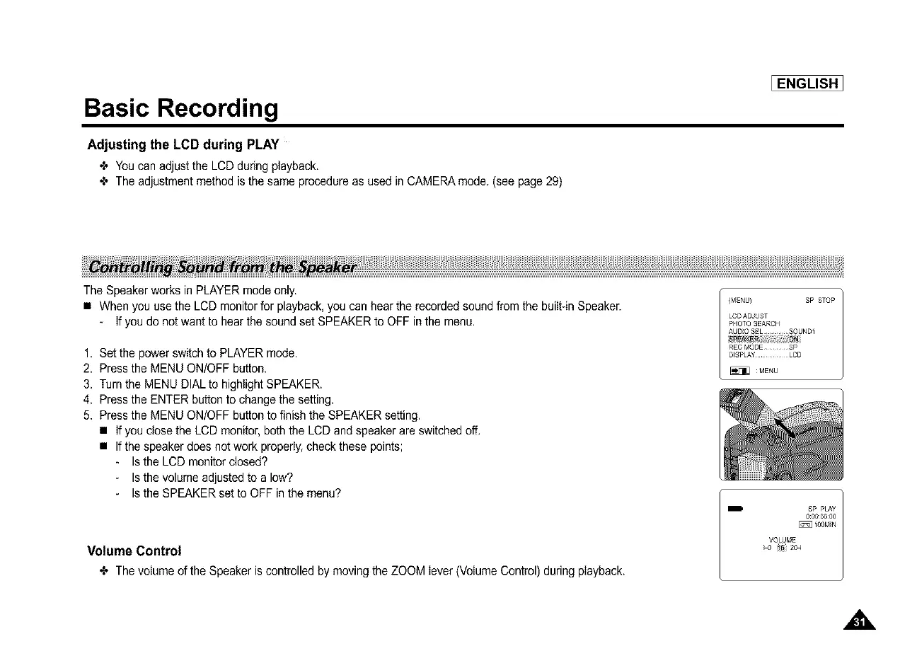 •X,Thevolumeof theSpeakeriscontrolledbymovingtheZOOMlever(VolumeControl)duringplayback.