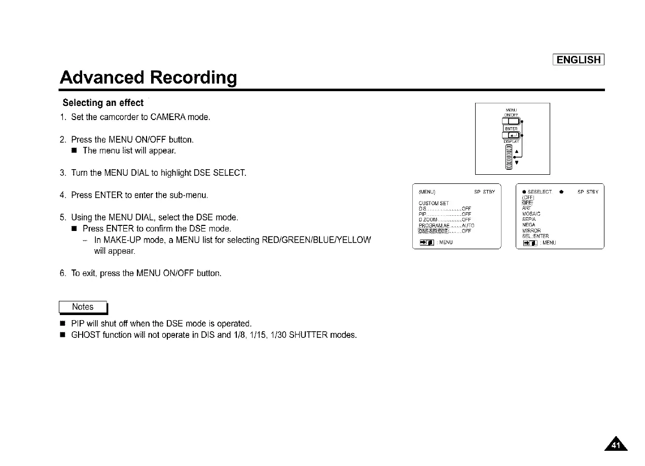 • GHOST function will not operate in DIS and 1/8, 1/15, 1/30 SHUTTER modes.