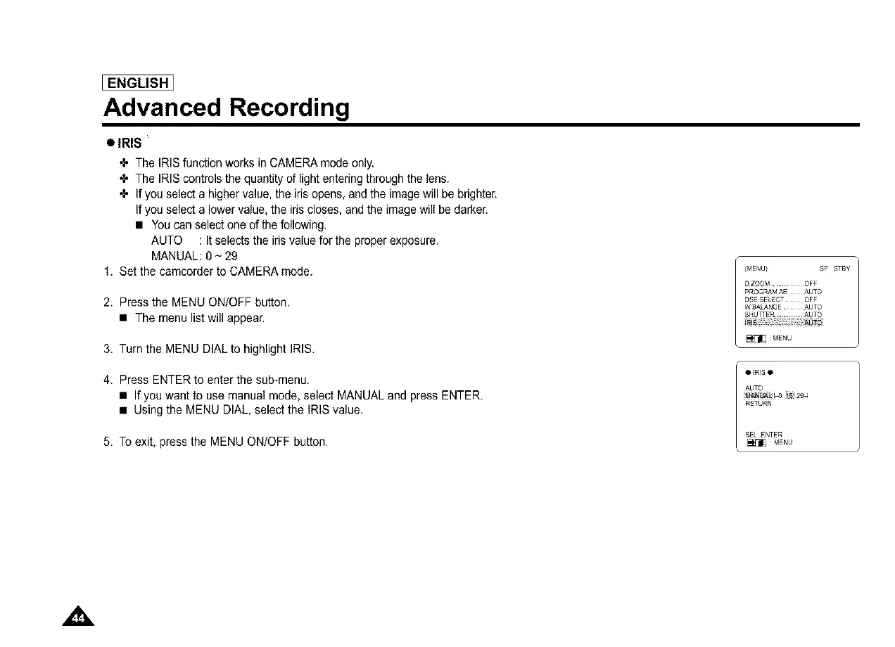3. Turn the MENU DIALto highlight IRIS.