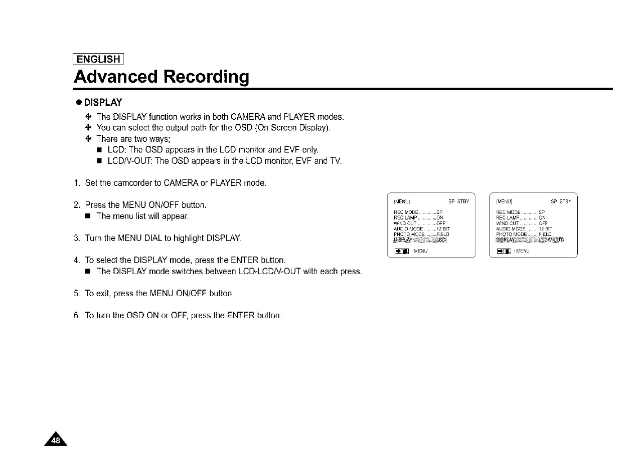 • LCD: The OSD appears in the LCD monitor and EVF only.