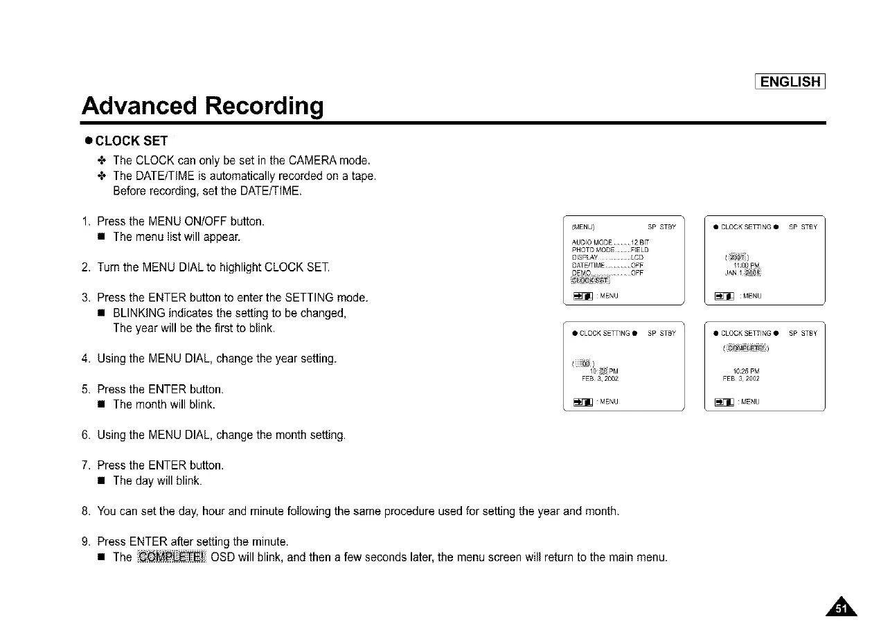 8. You can set the day, hour and minute foilowing the same procedure used for setting the year and month.