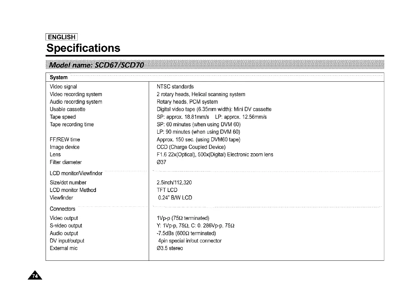 FF/REWtime Approx. 150 sec. (using DVM60 tape)