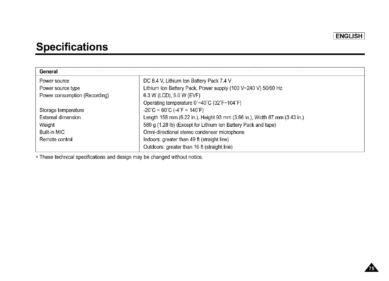 580 g (1.28 Ib) (Except for Lithium Ion Battery Pack and tape)