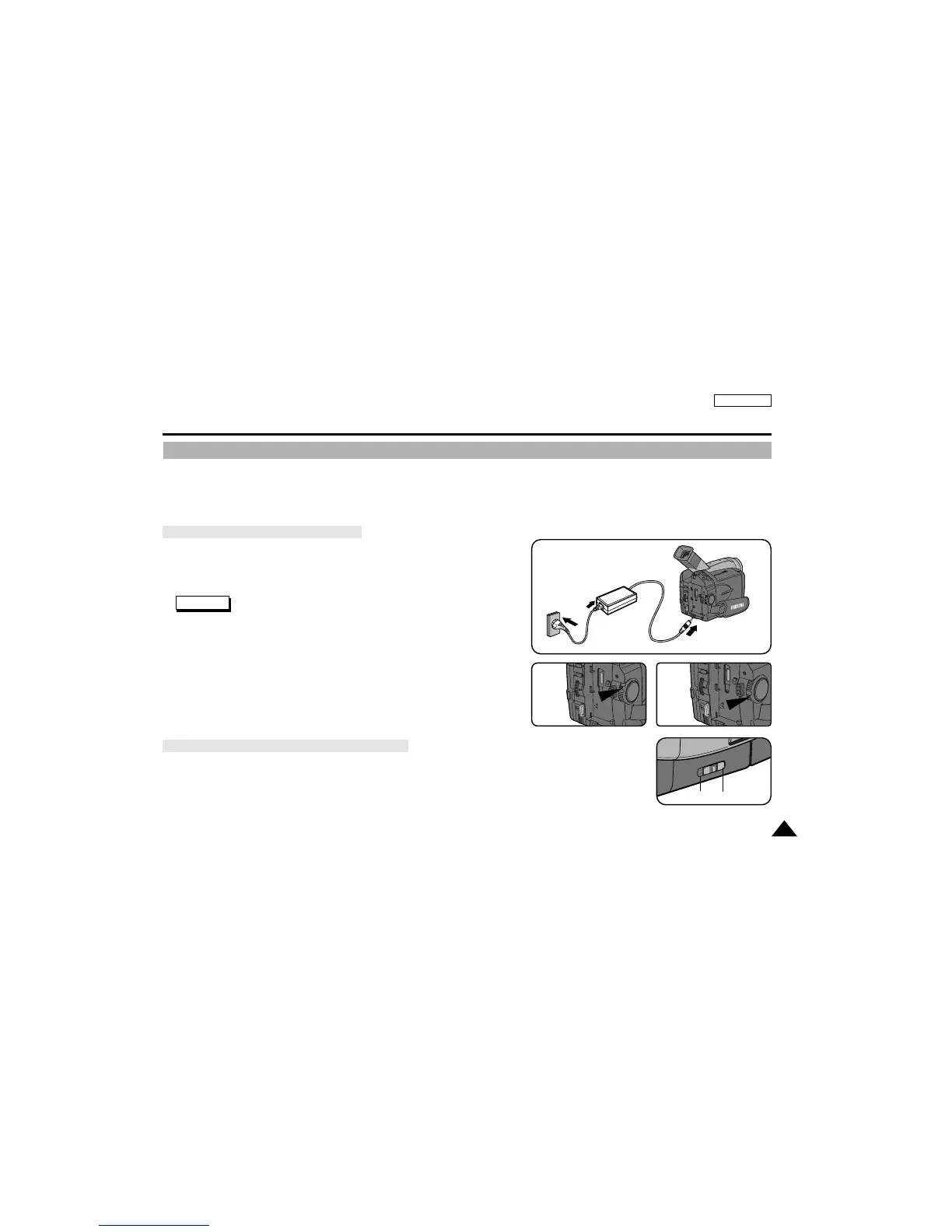 the tab on the power switch and turning it to the CAMERA or PLAYER position.