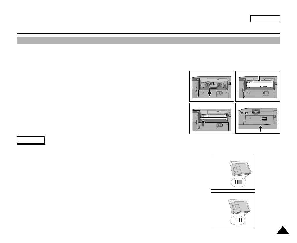 2. Insert a tape into the cassette holder with the tape window facing outward and
