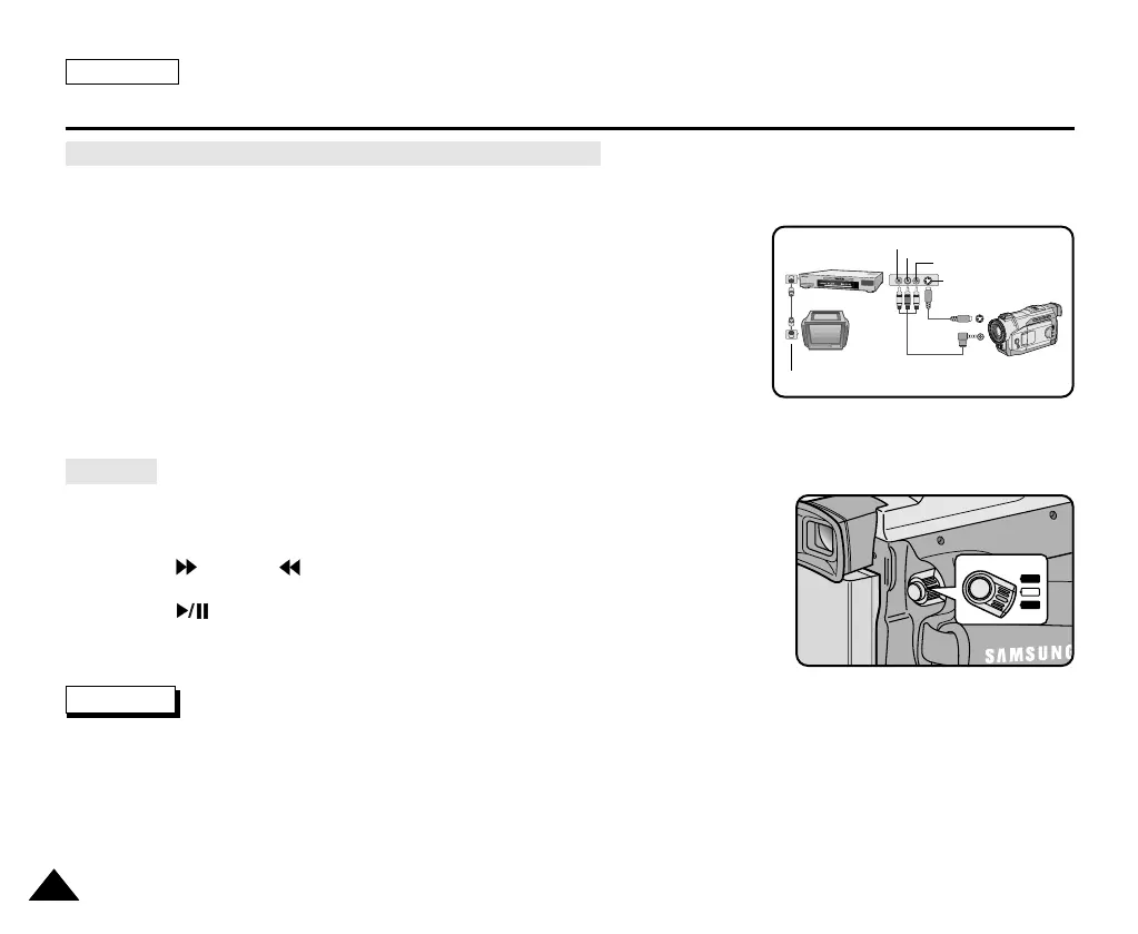 1. Connect the camcorder and VCR with the Audio/Video cable.