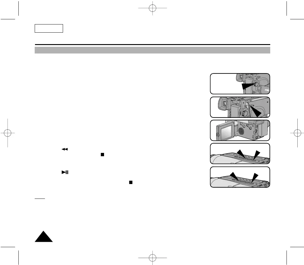 ■ Camcorder stops automatically after rewinding.